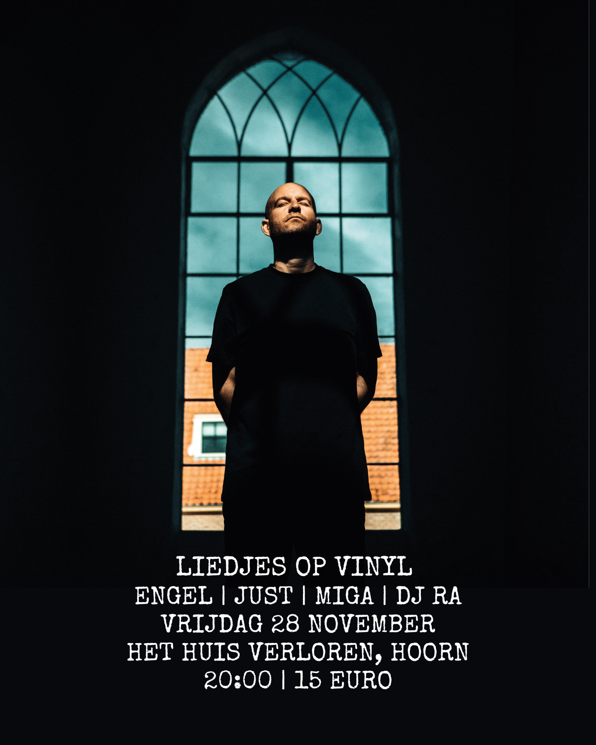 Op 28 november presenteert Engel zijn nieuwe album ‘Liedjes op Vinyl’ in Huis Verloren. De van oorsprong Hoornse rapper kon zijn oude stadje natuurlijk niet overslaan. Om de avond compleet te maken verzorgen Just en MiGA de support, terwijl DJ RA de platen spint. Engelland, baby!